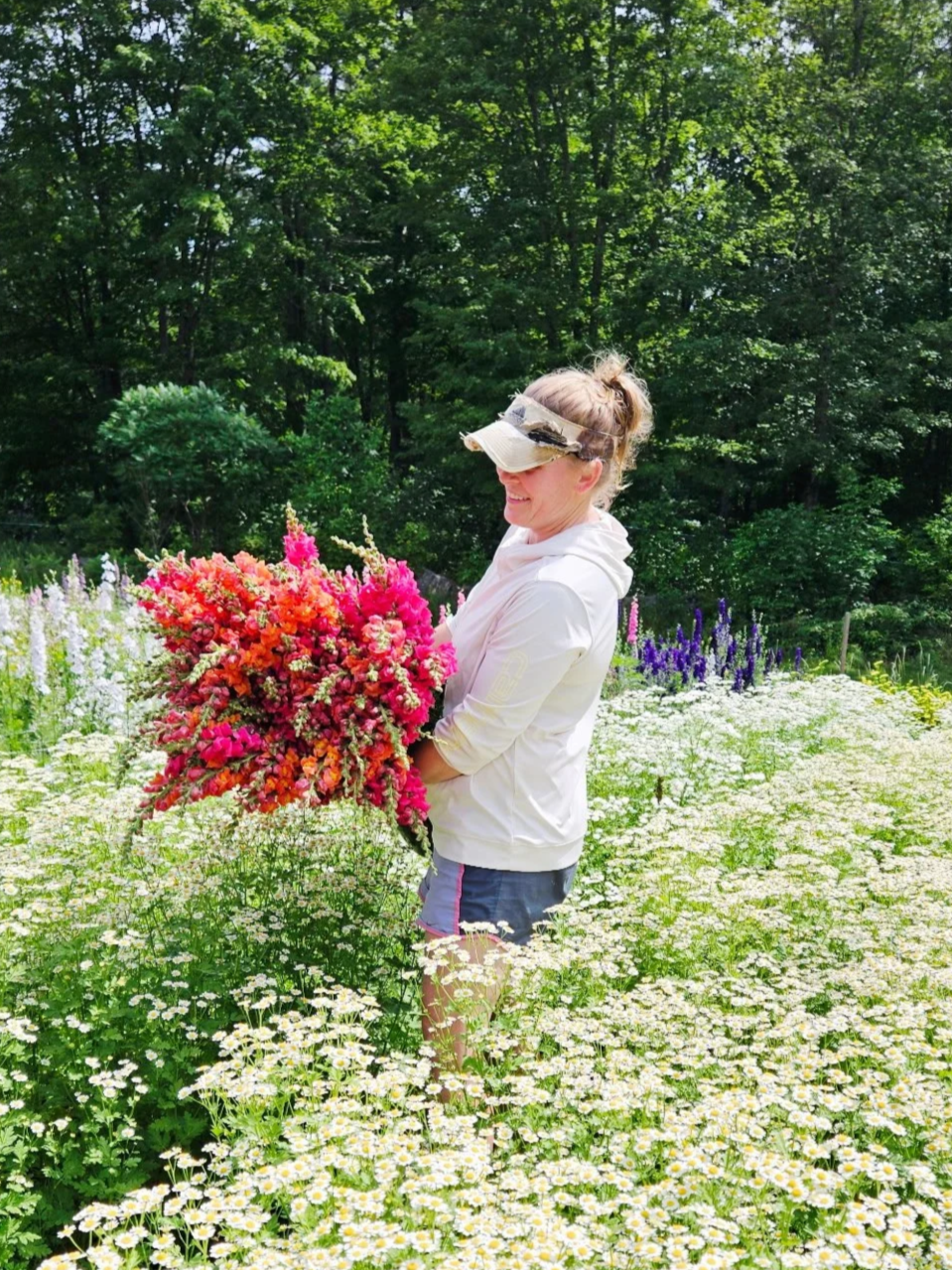 In 2012 (ish?) I weaseled my way into working for Chuck and Diane Souther at Apple Hill Farm in Concord, NH and they haven’t been able to get rid of me since! One day, we were all huddled around buckets of cut flowers putting together bouquets and Diane said to me, “That one’s really pretty, I think you missed your calling!” Well, that’s all it took. Those few words were stored away in my brain for another decade.